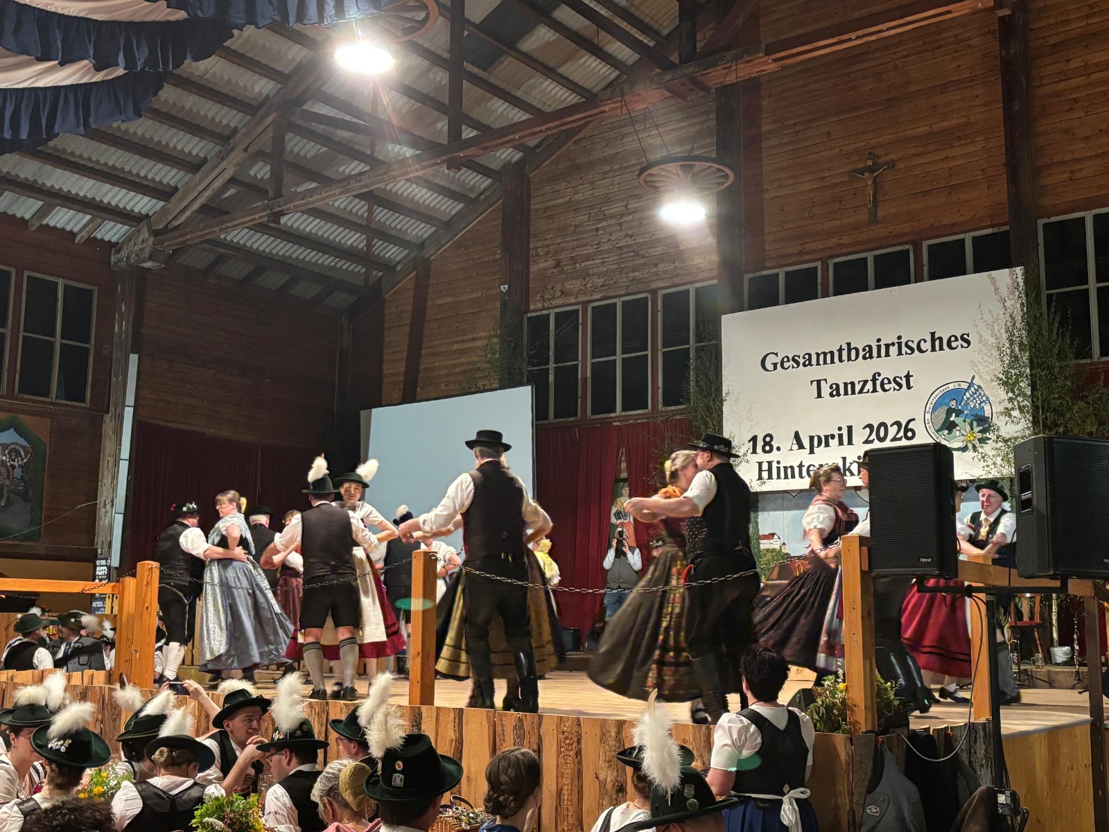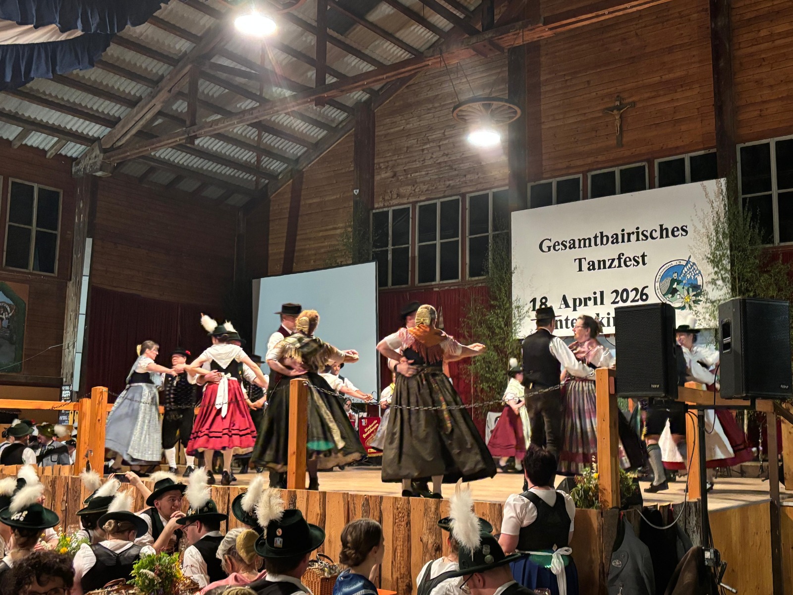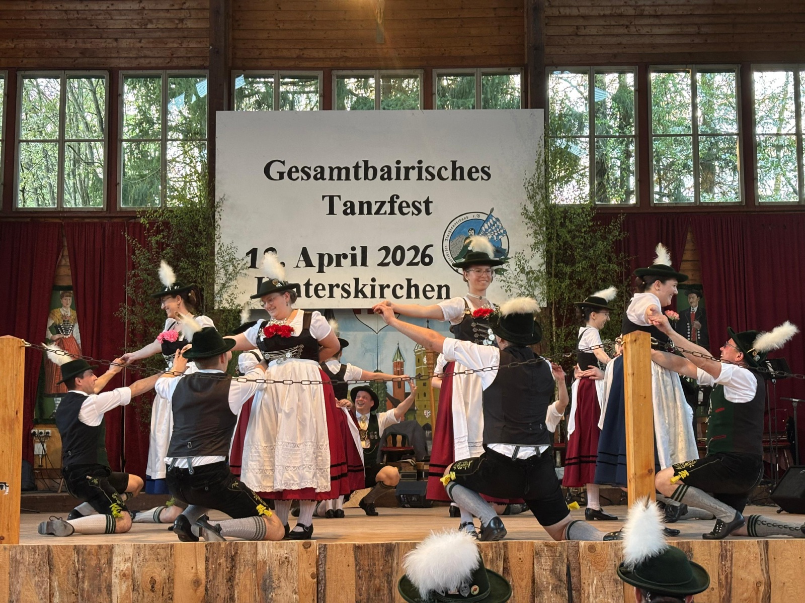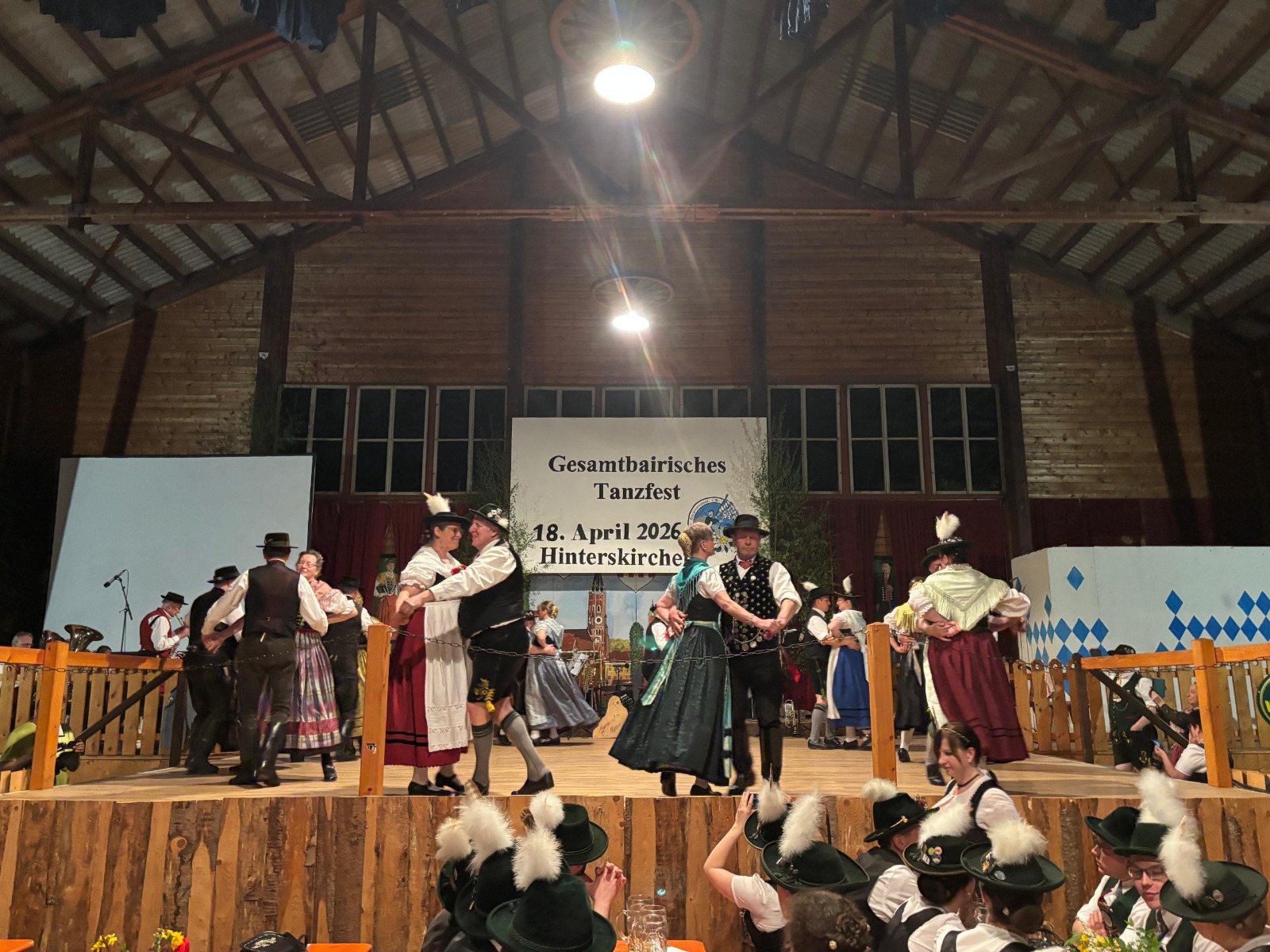 Am Samstag den 18.04.2026 fuhr ein Bus des Donaugau-Trachtenverbandes zusammen mit seinen Gaugruppen und einigen Gästen zum Gesamtbairischen Tanzfest nach Hinterskirchen. Dabei durfte sich die Aktivgruppe mit dem Haushammer und die Volkstanzgruppe mit dem Schwedenwalzer repräsentieren. Der Abend wurde dabei umrahmt von der Gautrachtenkapelle Beratzhausen, der Äigridschn Muse und der Schlapperflicker Musikanten. Durchs Programm führt der Sachauschuss Volkstanz und Schuhplatteln des Bayerischen Trachtenverbandes. Es war ein gelungener Abend voller Auftritte verschiedener Gauverbände, allgemeiner Volkstanzrunden und einiger Gemeinschaftsplattler.