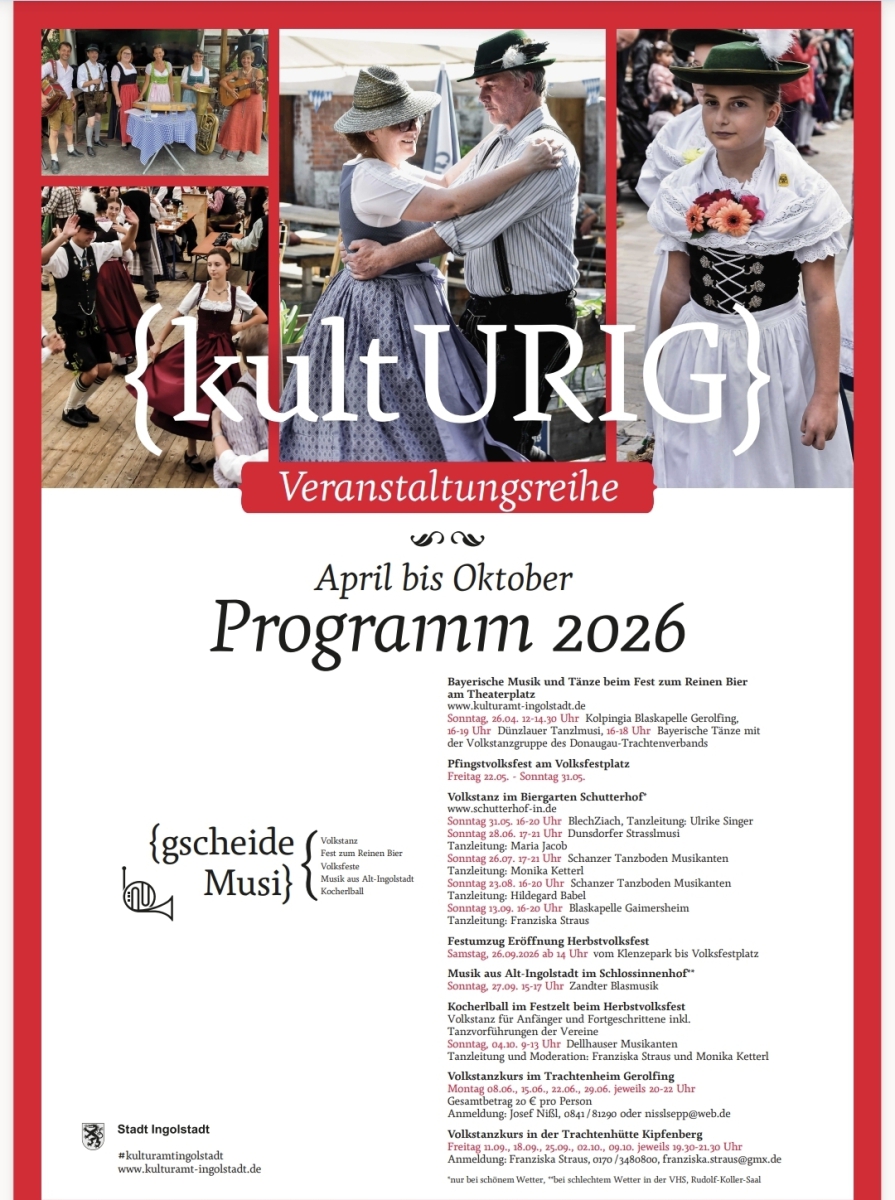 Das Fest zum reinen Bier ist heuer erstmalig auch der Auftakt für die kultUrig-Veranstaltungsreihe in Ingolstadt. Deswegen durfte die Gauvolkstanzgruppe am Sonntag, den 26.4.2026 dieses Fest mit Auftritten am Theaterplatz bereichern.