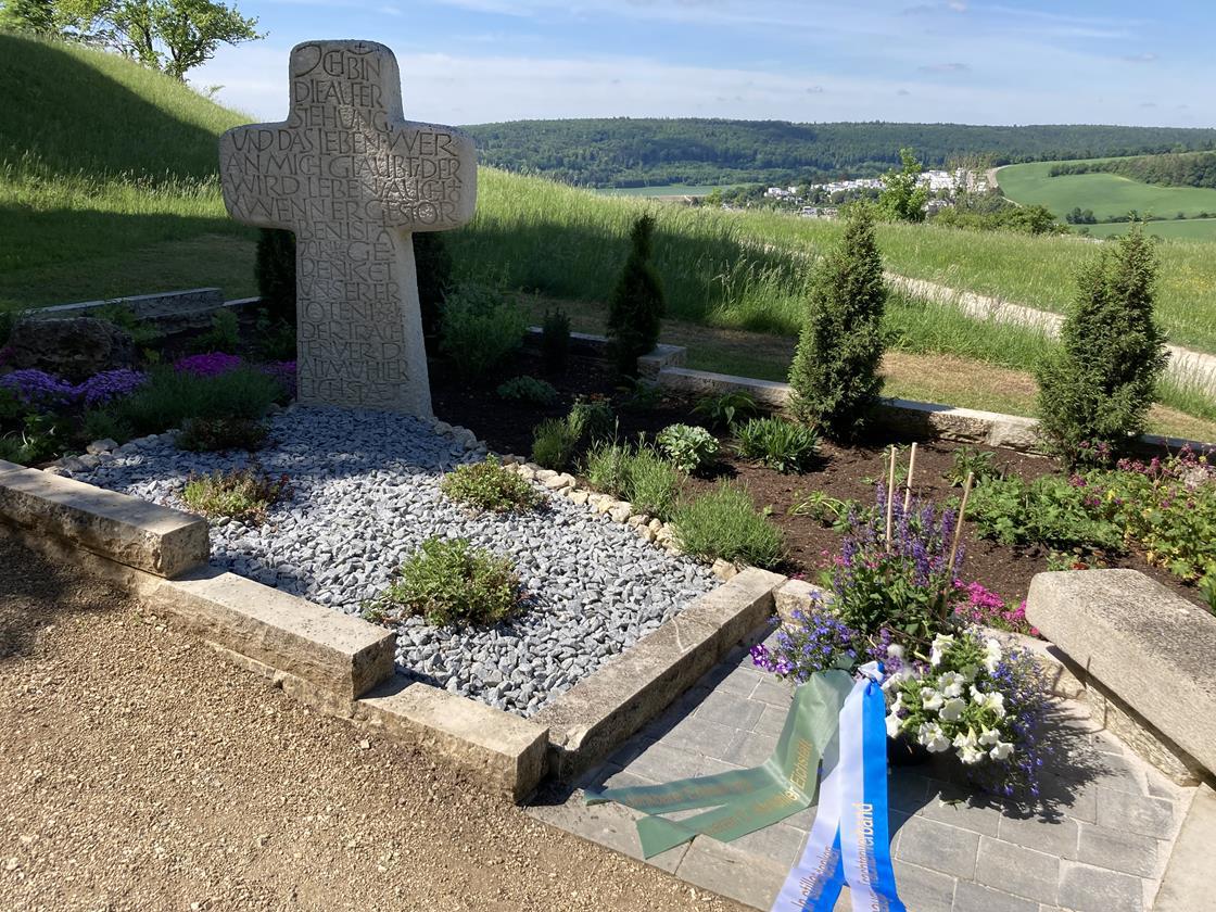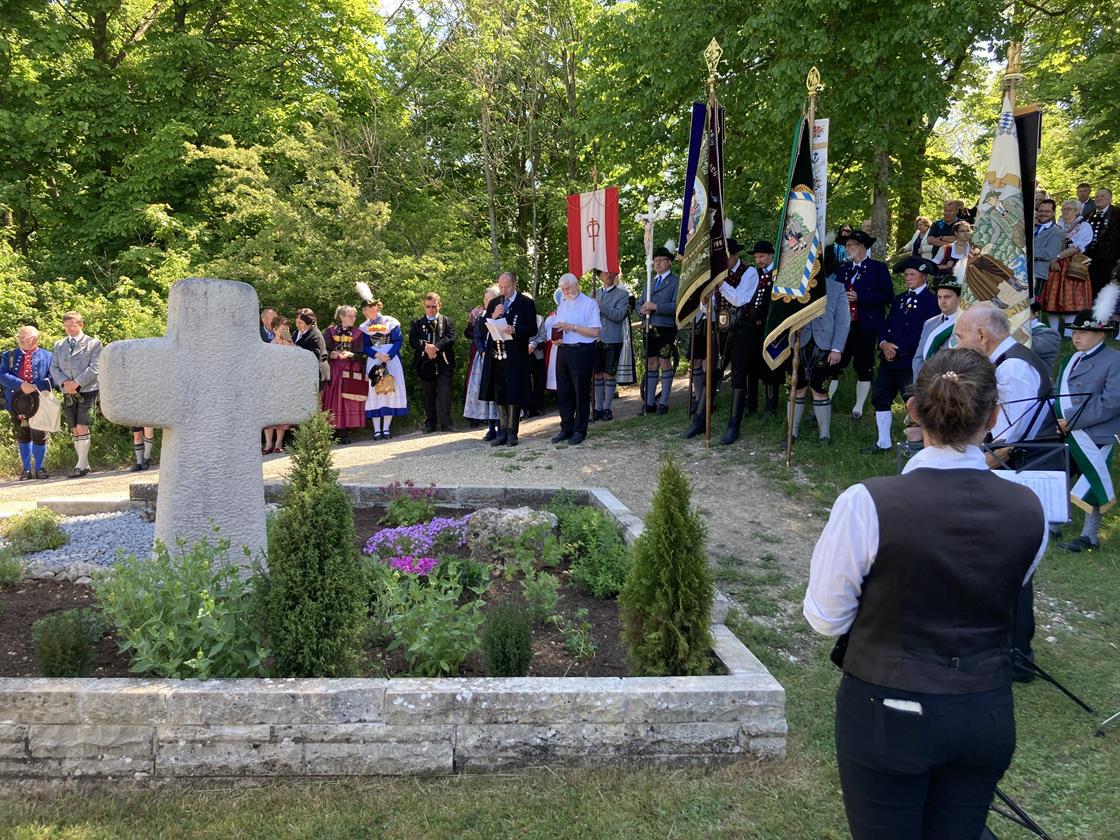 Nach dem Gottesdienst versammelten sich die Trachtler um das Ehrenmal des TV Eichstätt und gedachten den verstorbenen Mitgliedern.