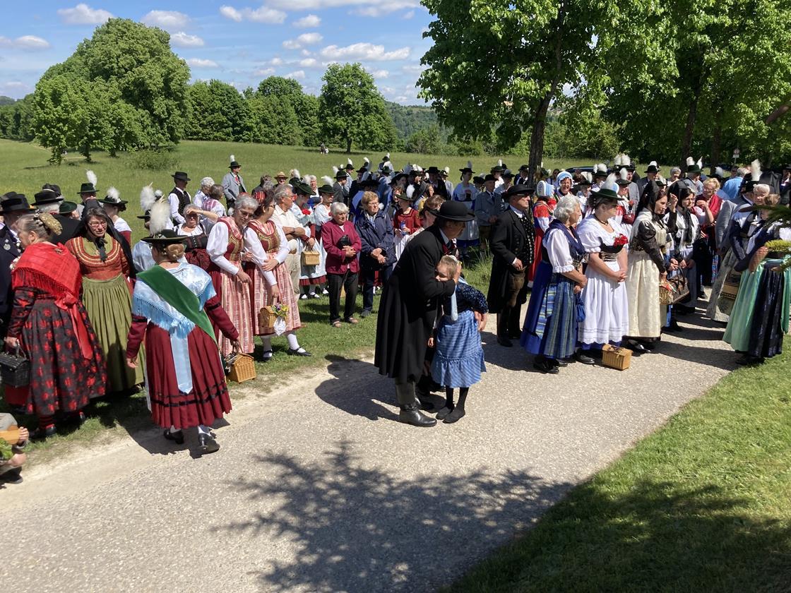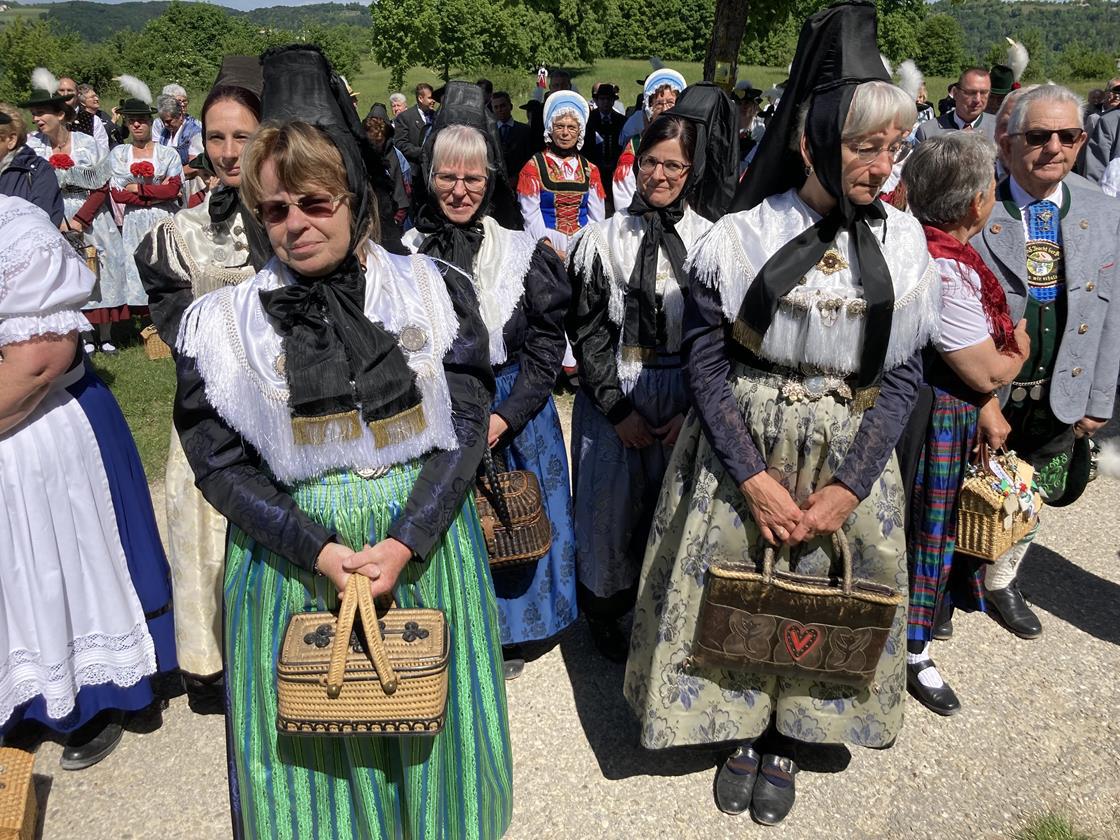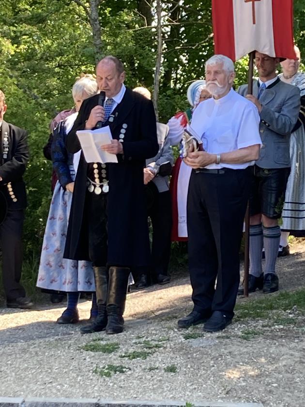 Als kleines Dankeschön für sein langjähriges Mitwirken an der Wallfahrt überreichte er Domkapitular Franz Mattes eine Film-Aufnahme des Gottesdienstes vom letzten Jahr. Er konnte coronabedingt nur im kleinsten Rahmen stattfinden und wurde aufgezeichnet. Pfarrer Mattes gestaltete seine Predigt wieder im netten Zwiegespräch mit einigen Trachtlerkindern. Die Antworten der Kinder sorgen immer für allgemeine Erheiterung!