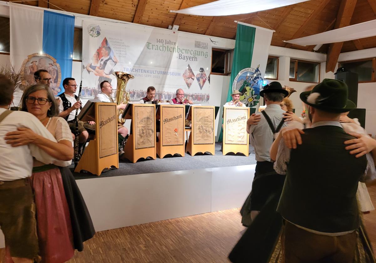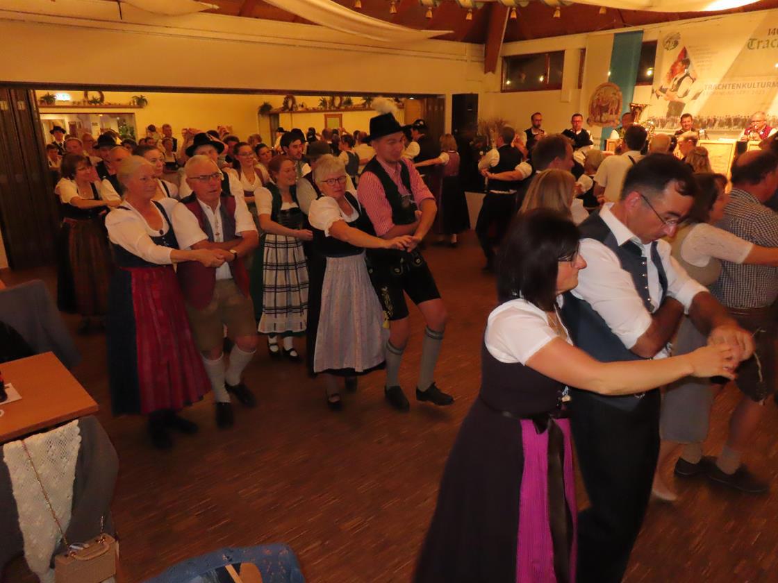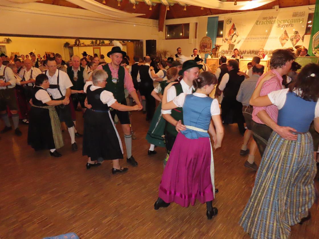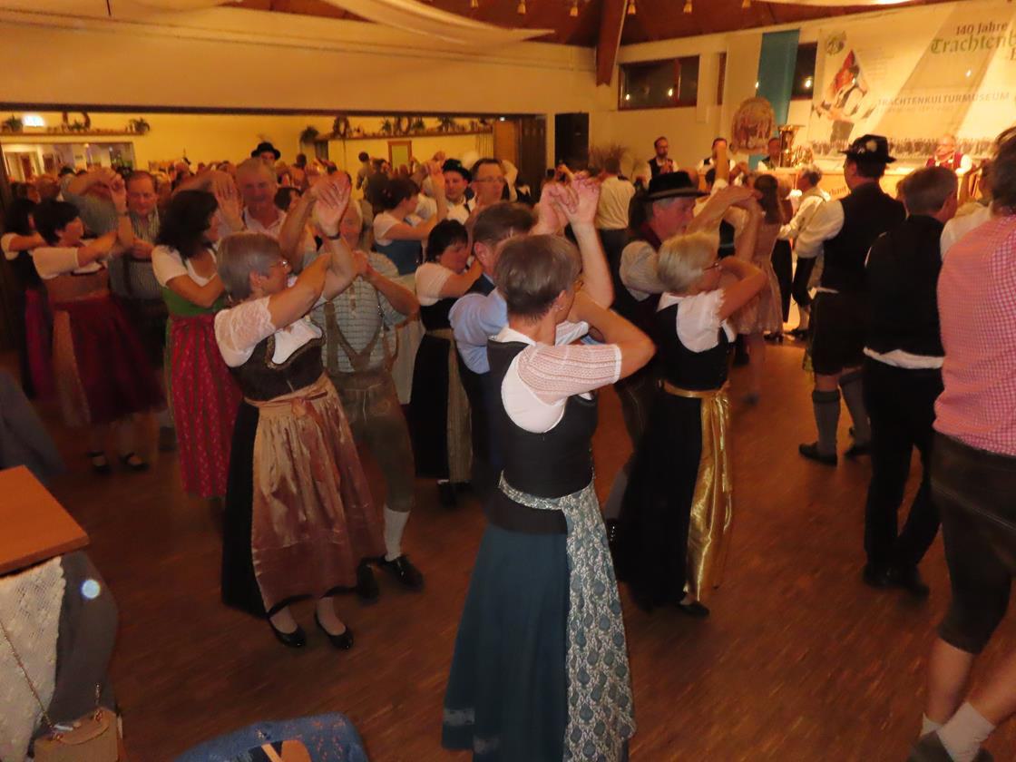 Lieder von der Bäurin, welche die Katz verloren hat, vom Vogelbeerbaum und dem Fridolin erklangen und alle Besucher gaben ihr Bestes. Danach eröffnete die Tanzlmusik Maschant den Volkstanzabend mit dem Auftanz. Beim abwechslungsreichen Programm von verschiedenen Volkstänzen, wie Sternpolka, Rehberger Landler, Boarischer oder Zwiefachen war für jeden, egal ob Profis oder Einsteiger das Passende dabei.
