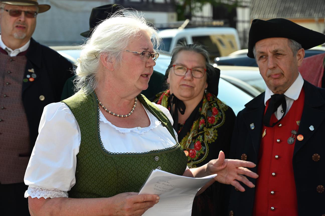 Renate Koch, Kassiererin des Bayerischen Trachtenverbandes, erzählte Geschichtliches zur Gegend um Lichtenfels im Obermaintal und dem Trachtenverein Lichtenfels. Dieser feiert 2026 als erster fränkischer Trachtenverein sein 100-jähriges Gründungsfest.