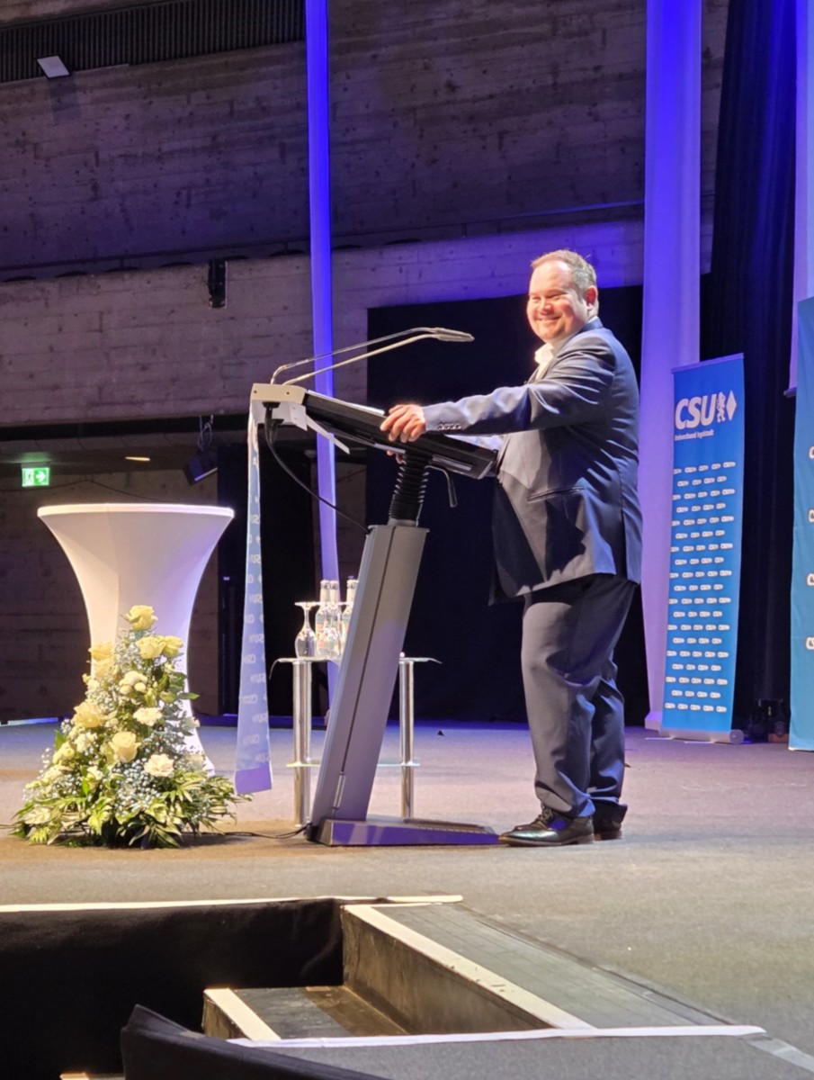 Bilduntertext: Kreisvorsitzender der CSU, Stefan Huber, bei der Eröffnung des Neujahrsempfanges