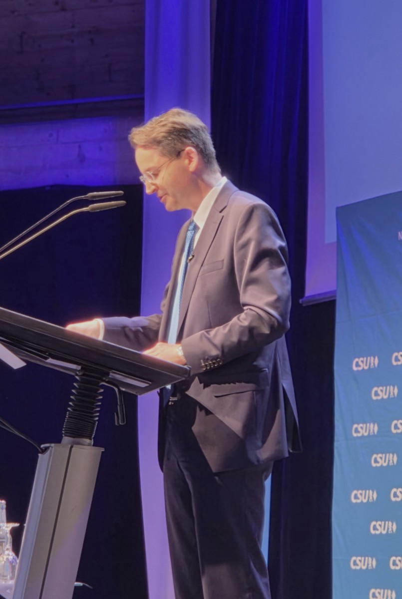 Bilduntertext: Markus Blume, MdL und Bayerischer Staatsminister für Wissenschaft und Kunst, bei seiner Festrede